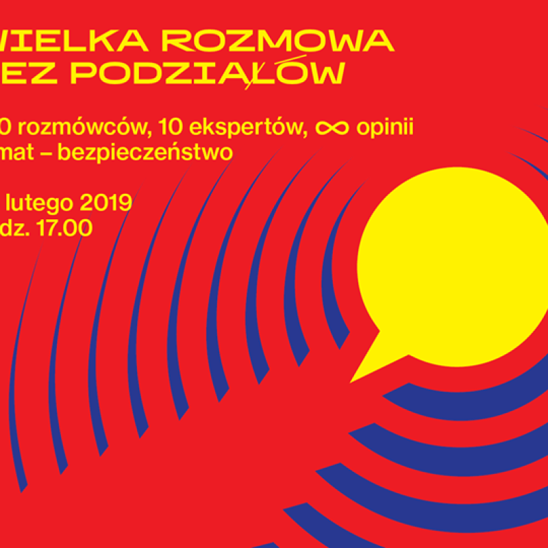 Artykuł Wielka rozmowa o bezpieczeństwie 100 rozmówców, 10 ekspertów, ∞ opinii – w sobotę 23 lutego zapraszamy do Muzeum Żydów Polskich POLIN na „Wielką rozmowę bez podziałów”, której tematem przewodnim będzie bezpieczeństwo. Wydarzenie organizowane jest w ramach projektu FREIRAUM przez Goethe-Institut w Warszawie, Fundację Panoptykon, Goethe-Institut Brüssel i Beursschouwburg. 05.02.2019 Tekst