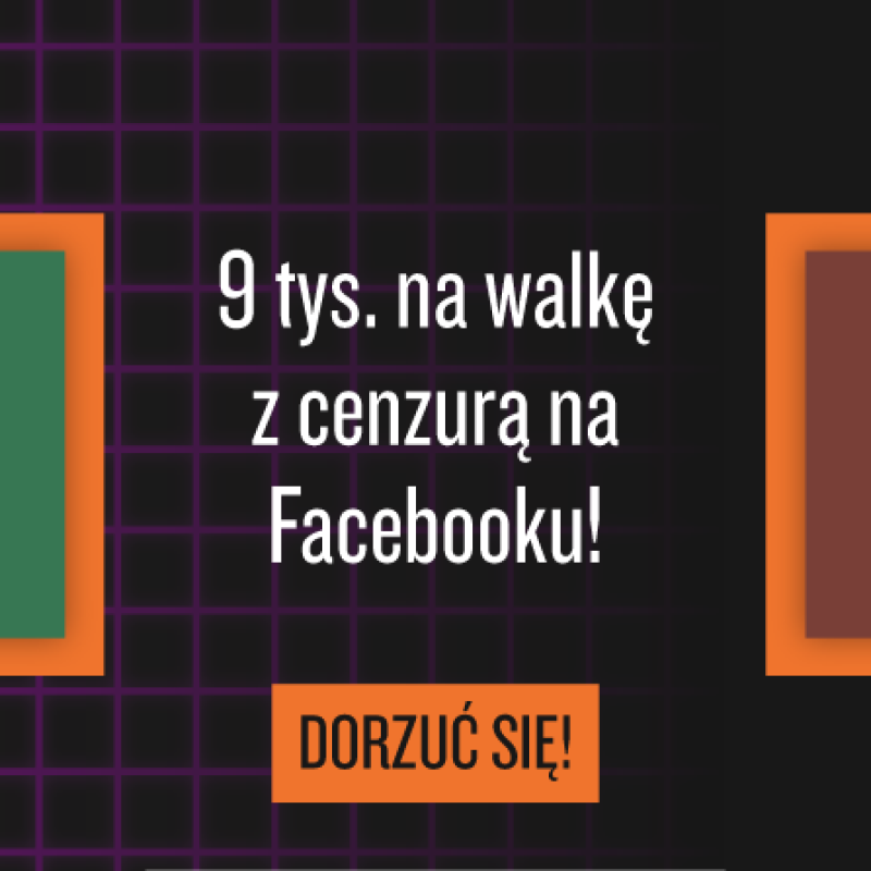 Artykuł Zbiórka na sprawę SIN vs Facebook Serdecznie dziękujemy za chęć wsparcia zbiórki na koszty związane z pozwem przeciwko Facebookowi! Potrzebną kwotę zebraliśmy szybciej niż mogliśmy się spodziewać i zamknęliśmy zbiórkę. Jeśli nie zdążyłeś/-aś się dorzucić do zbiórki, wesprzyj naszą walkę z prywatną cenzurą! 23.11.2020 Tekst