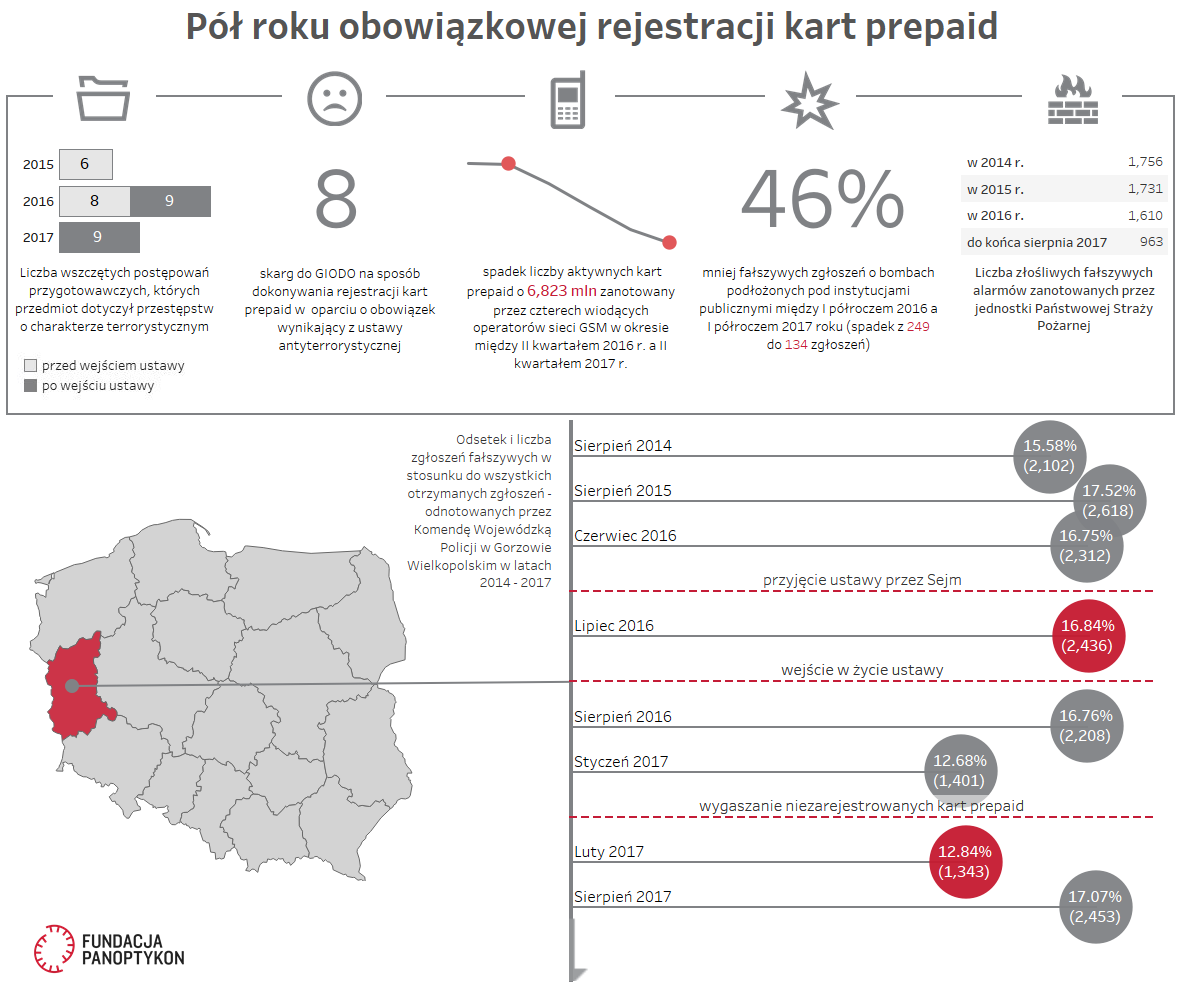 Artykuł 05.12.2017 5 min. czytania Tekst Image Na mocy ustawy antyterrorystycznej rejestracja kart prepaid stała się obowiązkowa. Wielokrotnie krytykowaliśmy pomysł, zarówno przed jego wprowadzeniem, jak i po nim. 1 lutego 2017 r. wszystkie karty SIM, które nie zostały zarejestrowane, wygasły. Czy obowiązek spełnił oczekiwania jego autorów, a także branży i obywateli? Panoptykon sprawdził, jak rejestracja prepaidów przebiegła w praktyce – a uzyskane dane są mniej niż jednoznaczne. Rządzący odpowiadają: „tak”. Informowaliśmy o wypowiedzi Ministra Spraw Wewnętrznych i Administracji Mariusza Błaszczaka w „Sygnałach Dnia”, obwieszczającej zawrotną skuteczność rejestracji kart prepaid w kontekście zwalczania fałszywych alarmów bombowych destabilizujących funkcjonowanie instytucji publicznych. Skierowaliśmy zapytanie do ministra z prośbą o przedstawienie merytorycznej podstawy jego wypowiedzi. Odpowiedź udzielona nam przez MSWiA, bazująca na statystykach prowadzonych przez Centralne Biuro Śledcze Policji, potwierdza słowa ministra Błaszczaka. W pierwszym półroczu 2016 r. zanotowano 249 fałszywych alarmów bombowych, a w analogicznym okresie w 2017 r. – 134. Argument ten odpowiada na założenie z uzasadnienia ustawy antyterrorystycznej, które prognozowało ograniczenie zjawiska „fałszywych powiadomień o podłożeniu ładunków wybuchowych, których celem jest wywołanie działań właściwych służb i doprowadzenie do zakłócenia funkcjonowania organów państwa”. Niewątpliwie fałszywe alarmy tego rodzaju są szczególnie kosztowne i destabilizujące działalność państwa, jednak w porównaniu ze złośliwymi fałszywymi alarmami jako takimi, których sama Państwowa Straż Pożarna notuje rocznie ponad dziesięciokrotnie więcej, pozostają zjawiskiem raczej marginalnym. Jak rejestracja kart prepaid przełożyła się na działalność antyterrorystyczną państwa? Czy umożliwiła skuteczniejsze wykrywanie przestępstw o charakterze antyterrorystycznym? Jakie koszty ponieśli operatorzy sieci GSM w związku z tym nowym obowiązkiem? Czy były one wyższe czy niższe od spadku wydatków związanych z fałszywymi alarmami bombowymi? Kto poniósł realny ciężar tych kosztów – operatorzy sieci czy ich klienci? Czy w procesie rejestracji przestrzegane były ustawowe zasady dotyczące ochrony danych osobowych? Jak likwidacja anonimowości kart wpłynęła na działalność dziennikarzy śledczych, aktywistów? Czy powstał czarny rynek, na którym można kupić karty zarejestrowane „na słupa”? Ocena obowiązkowej rejestracji kart musi uwzględniać konsekwencje ekonomiczne i społeczne, a także wpływ na prawa człowieka. Naszym zdaniem, by odpowiedzieć na pytanie „Czy było warto?”, nie wystarczy zbadanie liczby fałszywych alarmów bombowych. Jej spadek nie przesądza bowiem jednoznacznie, że wprowadzony obowiązek jest efektywny i proporcjonalny do poniesionych przez nas wszystkich kosztów. Na to pytania nie ma jednej odpowiedzi. Dlatego przedstawiamy zebrane przez nas dane w jednym miejscu – mamy nadzieję, że posłużą one wyrobieniu sobie własnego, opartego na wiedzy, a nie spekulacji i publicystyce, zdania. Weronika Adamska Polecamy: Karty pre-paid w ustawie antyterrorystycznej 10 pytań o obowiązkową rejestrację kart prepaid Wesprzyj działania Fundacji Panoptykon. Przekaż darowiznę! Fundacja Panoptykon Autor Temat antyterroryzm służby Poprzedni Następny Newsletter Otrzymuj informacje o działalności Fundacji Twoje dane przetwarza Fundacja Panoptykon w celu promowania działalności statutowej, analizy skuteczności podejmowanych działań i ewentualnej personalizacji komunikacji. Możesz zrezygnować z subskrypcji listy i zażądać usunięcia swojego adresu e-mail. Więcej informacji o tym, jak przetwarzamy twoje dane i jakie jeszcze prawa ci przysługują, w Polityce prywatności. Zapisz się Zapisz się Akceptuję Regulamin usługi Leave this field blank Zobacz także Artykuł Czas na brzydszą siostrę RODO Aktualizacja: 28.08 rząd przyjął projekt przepisów. 20.08.2018 Tekst Artykuł Europejski Trybunał Praw Człowieka zajmie się inwigilacją w Polsce Sposób, w jaki polskie służby prowadzą inwigilację, narusza prawo do prywatności, w szczególności aktywistów, obrońców i dziennikarzy. To główny zarzut skargi, jaką do Europejskiego Trybunału Praw Człowieka złożyliśmy wspólnie z aktywistkami Helsińskiej Fundacji Praw Człowieka oraz adw. 17.12.2020 Tekst Podcast „Ten model to fikcja”. Sądy i politycy kontrolują służby? Rozmowa z Piotrem Gąciarkiem, Adamem Szłapką, Wiesławem Szczepańskim W odpowiedzi na petycję Panoptykonu dotyczącą wprowadzenia kontroli nad policją i służbami specjalnymi przeczytaliśmy, że ich działalność już podlega odpowiedniemu nadzorowi, nie ma więc potrzeby tworzenia kolejnych instytucji. Sprawdziliśmy u źródła i przepytaliśmy tych, którzy tę kontrolę… 02.12.2021 Dźwięk