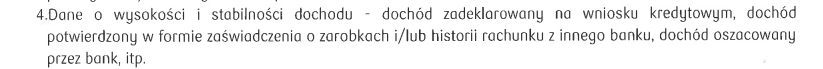 Jakie dane osobowe wziął pod uwagę bank przy ocenie zdolności? Z cytowanej wyżej odpowiedzi trudno to wywnioskować. Prawidłowo sformułowana odpowiedź powinna bowiem wskazywać na konkretne informacje dotyczące wnioskującego, a nie kategorie informacji („źródła dochodu”), jakie bank bierze pod uwagę.