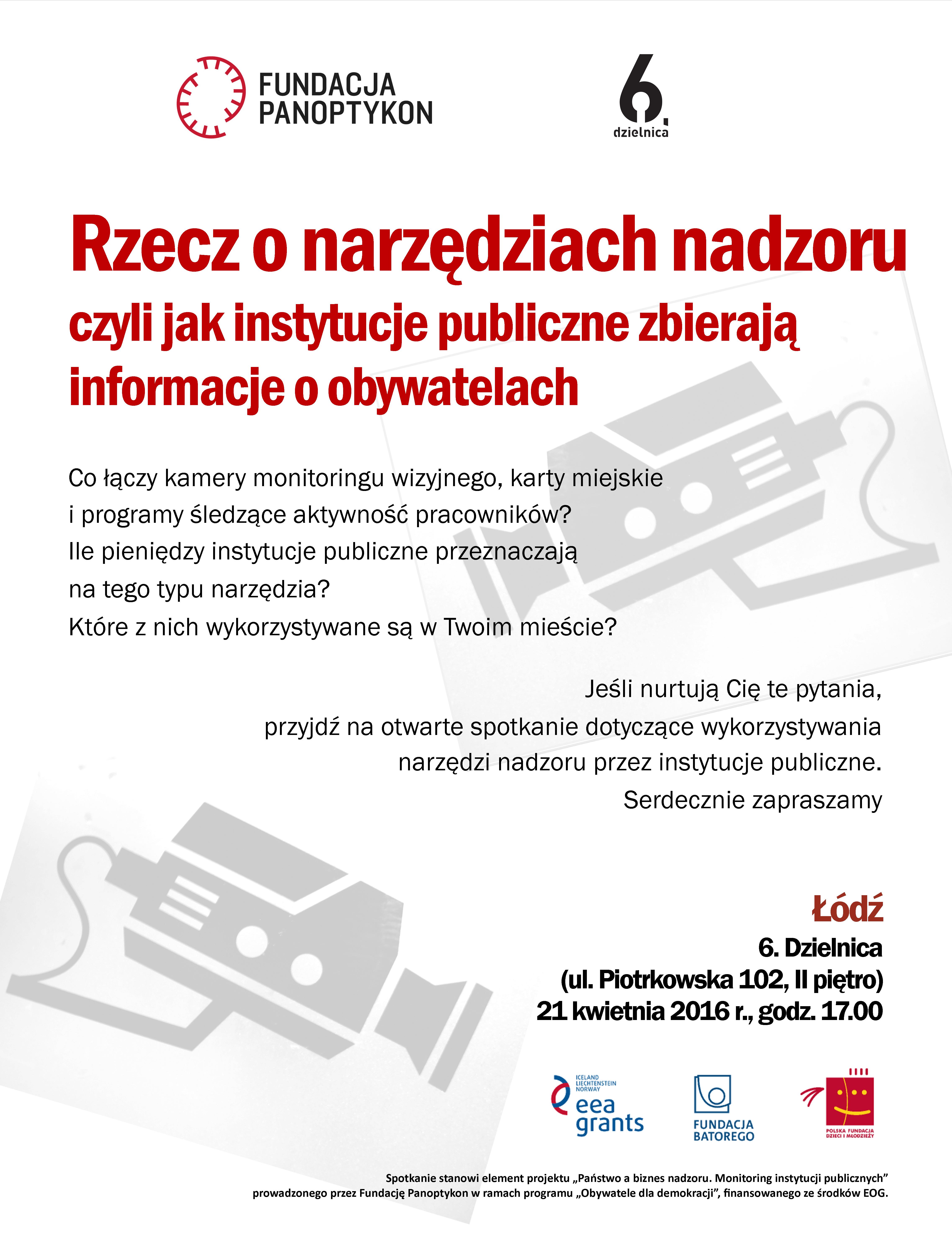 Artykuł 15.04.2016 1 min. czytania Tekst Image Co łączy kamery monitoringu wizyjnego, karty miejskie i programy śledzące aktywność pracowników? Ile pieniędzy instytucje publiczne przeznaczają na tego typu narzędzia? Które z nich wykorzystują różne miasta? Na te i inne pytania odpowiadaliśmy dotychczas na spotkaniach, które odbyły się w ramach projektu „Państwo a biznes nadzoru” w Krakowie, Lublinie i Warszawie. Teraz kolej na Łódź. Miasto, w którym w komunikacji miejskiej nagrywany jest dźwięk, a monitoring na ul. Piotrkowskiej ma być wykorzystywany między innymi do analizowania tego, z tego, w jaki sposób na tej ulicy czas spędzają łodzianie. Jeśli chcesz dowiedzieć się więcej o narzędziach wykorzystywanych przez różne instytucje publiczne i tym, jak sytuacja wygląda w Łodzi, przyjdź na spotkanie 21 kwietnia 2016 r. w Klubie 6. Dzielnica w Łodzi (ul. Piotrkowska 102, II piętro). Serdecznie zapraszamy na godz. 17.00. Spotkanie ma charakter otwarty, nie obowiązują wcześniejsze zapisy. Fundacja Panoptykon Autor Temat dane osobowe monitoring wizyjny miasta służby Poprzedni Następny Newsletter Otrzymuj informacje o działalności Fundacji Twoje dane przetwarza Fundacja Panoptykon w celu promowania działalności statutowej, analizy skuteczności podejmowanych działań i ewentualnej personalizacji komunikacji. Możesz zrezygnować z subskrypcji listy i zażądać usunięcia swojego adresu e-mail. Więcej informacji o tym, jak przetwarzamy twoje dane i jakie jeszcze prawa ci przysługują, w Polityce prywatności. Zapisz się Zapisz się Akceptuję Regulamin usługi Leave this field blank Zobacz także Artykuł Komisja senacka ds. Pegasusa mówi jasno: służby do kontroli Pegasus jest w Polsce nielegalny, wybory w 2019 r. powinny były być unieważnione, a służby – jak najszybciej poddane ścisłej, niezależnej kontroli. Tak najkrócej można podsumować raport nadzwyczajnej komisji senackiej badającej wykorzystanie w Polsce oprogramowania Pegasus. 07.09.2023 Tekst Artykuł Kamery w szkołach – szansa na porządki Ministerstwo Cyfryzacji wspólnie z Ministerstwem Edukacji Narodowej przygotowało projekt regulacji funkcjonowania kamer w szkołach. Urządzeń od tego nie ubędzie, ale przynajmniej skończy się monitoringowa wolna amerykanka. Napisaliśmy do ministerstw o tym, co myślimy o proponowanej regulacji:… 04.05.2018 Tekst Artykuł Brytyjska masowa inwigilacja narusza prawa człowieka Prowadząc masową inwigilację, Wielka Brytania narusza prawo do prywatności swoich obywateli i ogranicza im wolność słowa – uznał Europejski Trybunał Praw Człowieka. Precedensowy wyrok w sprawie Big Brother Watch i inni przeciwko Wielkiej Brytanii ma też ogromne znaczenie w polskich realiach… 13.09.2018 Tekst