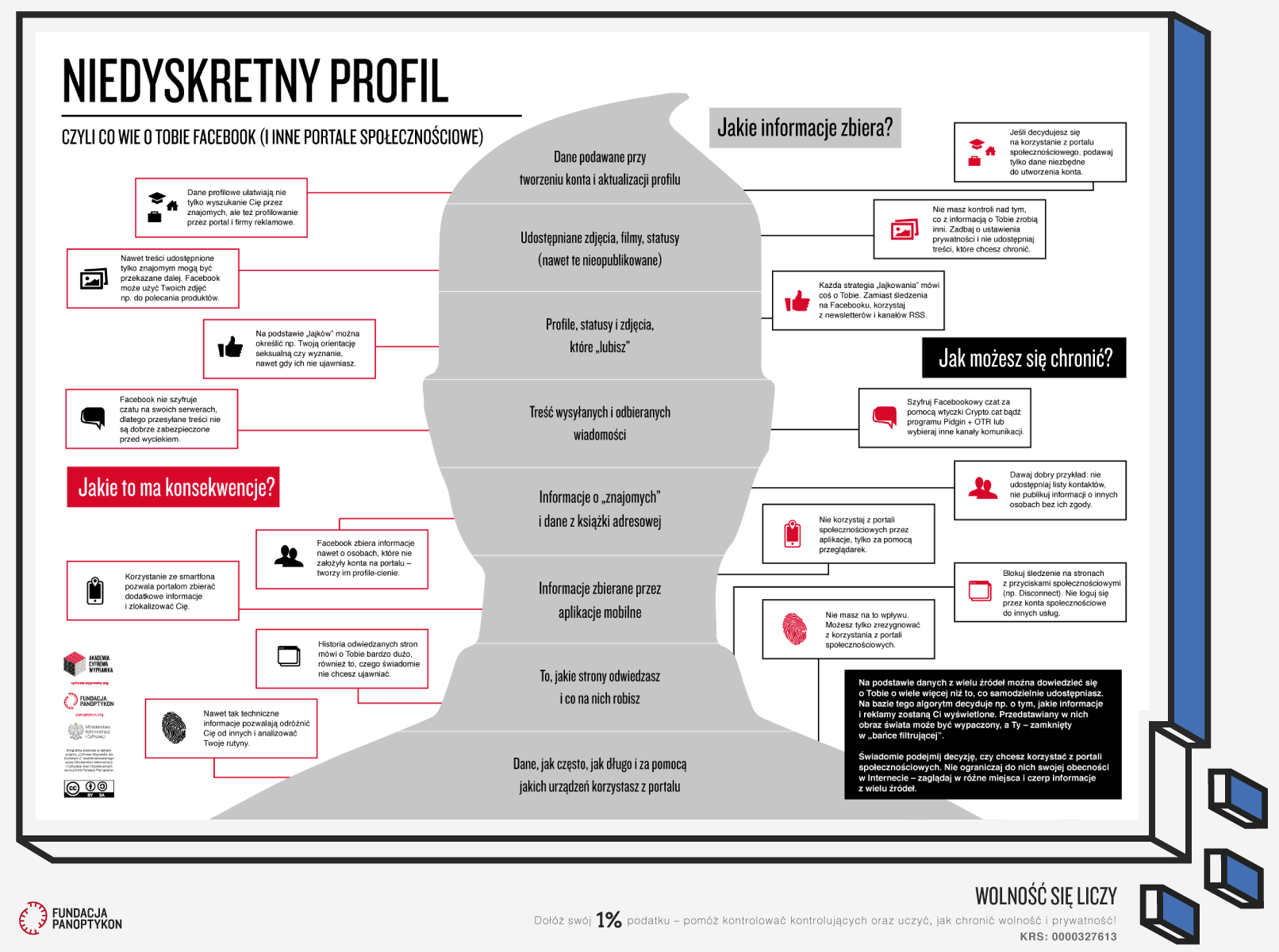 Nowe ustawienia prywatności wprowadzone przez Facebooka nazywają się bardzo przyjaźnie „Basics”, a reklamuje je hasło: „To ty decydujesz”. Facebook udostępnia nam dokładny katalog informacji, które wywnioskował ze śledzenia naszych działań (w ramach portalu, na powiązanych stronach, na urządzeniu mobilnym i poprzez firmy związane z Facebookiem). To ważny krok zwiększający przejrzystość w tej relacji, choć jeszcze nie gwarancja ochrony prywatności. Możemy poznać i zmodyfikować swój profil, ale nie możemy powstrzymać śledzenia – szczególnie, że kluczową rolę w tym zakresie odgrywają dane zbierane przez inne strony i przekazywane portalom w ramach współpracy marketingowej. Żeby to zmienić, potrzebna jest systemowa zmiana reguł świadczenia usług przez firmy internetowe, nie tylko portale społecznościowe – a konkretnie odejście od modelu „usługa w zamian za dane”.
