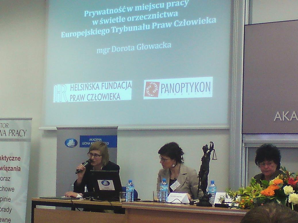 Artykuł 18.04.2011 3 min. czytania Tekst Image 14 kwietnia 2011 na Akademii Leona Koźmińskiego odbyła się konferencja pt. „Ochrona danych osobowych w prawie pracy i w prawie ubezpieczeń społecznych – stan obecny i perspektywy zmian”. Wydarzenie zorganizowało Kolegium Prawa ALK wspólnie z Wydziałem Prawa i Administracji Uniwersytetu Kardynała Stefana Wyszyńskiego, Kołem Naukowym Lege Artis oraz Biurem Generalnego Inspektora Danych Osobowych. Podczas konferencji referat pt. „Prywatność w miejscu pracy w świetle orzecznictwa Europejskiego Trybunału Praw Człowieka” przedstawiła Dorota Głowacka reprezentująca Helsińską Fundację Praw Człowieka oraz Fundację Panoptykon. Celem konferencji było zainicjowanie dyskusji nad reformą prawa pracy w obszarze ochrony danych osobowych, tak aby dostosować obowiązujące regulacje do współczesnych realiów rynku, a z drugiej strony zapewnić pełne gwarancje ochrony prywatności podwładnych (a także osób starających się o pracę). Konferencja miała być okazją do spotkania, wymiany poglądów i doświadczeń przedstawicieli świata nauki, instytucji państwowych i biznesu. Druga część konferencji była poświęcona zagadnieniom ochrony danych osobowych w ramach systemu ubezpieczeń społecznych. Referat Doroty Głowackiej podsumowywał najważniejsze kierunki rozwoju regulacji krajowych dotyczące ochrony prywatności pracowników wynikające z orzecznictwa Trybunału strasburskiego, w szczególności w kontekście wykorzystania nowoczesnych narzędzi nadzoru. Znalazło się w nim omówienie najważniejszych orzeczeń ETPCz dotyczących m.in.: zasad kontroli komunikacji personelu prowadzonej przy wykorzystaniu służbowych narzędzi, głównie telefonu i komputera (Halford p. Zjednoczonemu Królestwu, Copland p. Zjednoczonemu Królestwu), stosowania monitoringu wizyjnego w miejscu pracy (Kopke p. Niemcom), czy gromadzenia danych biologicznych pracowników (Wretlung p. Szwecji, Madsen p. Danii). Wśród zaproszonych gości głos zabrali także m.in.: dr Wojciech Wiewiórowski (Generalny Inspektor Ochrony Danych Osobowych), prof. dr hab. Jan Paweł Tarno (sędzia NSA, Uniwersytet Łódzki), prof. dr hab. Grażyna Szpor (Uniwersytet Kardynała Stefana Wyszyńskiego), dr Ewa Kulesza (b. GIODO, Uniwersytet Łódzki), prof. dr hab. Mirosław Włodarczyk (Uniwersytet Łódzki, Uniwersytet Kardynała Stefana Wyszyńskiego), dr Wiesław Koczur (Uniwersytet Ekonomiczny w Katowicach), prof. dr hab. Teresa Wyka (Uniwersytet Łódzki, Akademia Leona Koźmińskiego), dr Arwid Mednis (Uniwersytet Warszawski) oraz przedstawiciele Zakładu Ubezpieczeń Społecznych, Państwowej Inspekcji Pracy, Polskiej Konfederacji Pracodawców Prywatnych Lewiatan, kancelarii prawniczych i innych podmiotów. Wszystkie referaty zostaną zamieszczone w publikacji pokonferencyjnej. Pełen program konferencji dostępny jest tutaj. Zdjęcia z konferencji można obejrzeć tutaj. adamczyk Autor Linki i dokumenty konf mniejsze.jpg62.23 KBjpeg konf większe.jpg110.19 KBjpeg Temat reforma ochrony danych praca Poprzedni Następny Newsletter Otrzymuj informacje o działalności Fundacji Twoje dane przetwarza Fundacja Panoptykon w celu promowania działalności statutowej, analizy skuteczności podejmowanych działań i ewentualnej personalizacji komunikacji. Możesz zrezygnować z subskrypcji listy i zażądać usunięcia swojego adresu e-mail. Więcej informacji o tym, jak przetwarzamy twoje dane i jakie jeszcze prawa ci przysługują, w Polityce prywatności. Zapisz się Zapisz się Akceptuję Regulamin usługi Leave this field blank Zobacz także Artykuł Rok po RODO – podsumowanie i życzenia na przyszłość 25 maja mija rok od rozpoczęcia obowiązywania RODO. Przyjęcie ustawy, która dostosowała do RODO setki innych, definitywnie zamyka okres przejściowy i wszelkie dyskusje o wdrażaniu zmian wywołanych przez rozporządzenie. Choć przez ostatni rok RODO przypominało raczej strzelbę, która załadowana czeka… 21.05.2019 Tekst Artykuł Powielanie mitów o RODO wywołuje olbrzymie szkody Celem RODO nie jest komplikowanie ludziom życia, ale oddanie im większej kontroli nad danymi. I jeśli przestaniemy się zajmować narzekaniem i mnożeniem absurdów, ten cel nadal można zrealizować. 24.07.2018 Tekst Artykuł Prawo do wyjaśnienia decyzji kredytowej: nowa jakość w relacji klient–bank* Ponad 40% Polaków ma kredyt w banku. Dotychczas w relacji z bankiem stawali oni w roli petentów, którzy – starając się o środki, których potrzebują – naturalnie byli w gorszej pozycji. Przejawiało się to m.in. w tym, że banki mogły zażądać od nich wszelkich informacji związanych z ich sytuacją i… 21.03.2019 Tekst