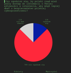 Artykuł 04.03.2015 2 min. czytania Tekst Image Polacy nie chcą poświęcać prywatności dla bezpieczeństwa. Taki budujący wniosek można wysnuć z badania Polskiego Towarzystwa Badaczy Rynku i Opinii zrealizowanego przez Millward Brown SMG/KRC. Na pytanie: „Czy zgadzasz się, by polski rząd miał pełny dostęp do informacji o twojej aktywności w sieci, żeby lepiej dbać o bezpieczeństwo polskiej cyberprzestrzeni?”, twierdząco odpowiedziało tylko 13 proc. obywateli. Polacy nie chcą poświęcać swojej prywatności również dla wygody – na wszczepienie chipu, który pozwoliłby płacić zbliżeniowo zgodziłoby się tylko 11 proc. respondentów. W komentarzu do wyników badań prezeska Fundacji Panoptykon Katarzyna Szymielewicz podkreśla: „Mimo dość tendencyjnego sformułowania, sugerującego, że dzięki pełnemu dostępowi do informacji rząd będzie mógł lepiej dbać o bezpieczeństwo cyberprzestrzeni, i nasilającej się medialnej paniki wokół cyberterroryzmu, dwie trzecie Polaków odrzuca tę logikę”. Te i podobne badania z lat ubiegłych ukazują Polaków jako przekonanych o bezpieczeństwie swojej komunikacji i o tym, że nikt nie ma prawa śledzić ich ruchu w sieci. Niestety, o takie prawa nadal musimy walczyć. Fundacja Panoptykon Autor Temat bezpieczeństwo Poprzedni Następny Newsletter Otrzymuj informacje o działalności Fundacji Twoje dane przetwarza Fundacja Panoptykon w celu promowania działalności statutowej, analizy skuteczności podejmowanych działań i ewentualnej personalizacji komunikacji. Możesz zrezygnować z subskrypcji listy i zażądać usunięcia swojego adresu e-mail. Więcej informacji o tym, jak przetwarzamy twoje dane i jakie jeszcze prawa ci przysługują, w Polityce prywatności. Zapisz się Zapisz się Akceptuję Regulamin usługi Leave this field blank Zobacz także Artykuł Kto może zajrzeć do Twojego e-PIT-a? W przededniu uruchomienia usługi Twój e-PIT Ministerstwo Finansów ostrzegało przed oszustami próbującymi nabrać podatników na płatny dostęp do usługi Twój e-PIT. Jak się jednak szybko okazało, samo niedostatecznie go zabezpieczyło: jedna z opcji logowania umożliwia dostęp do danych podatników… 20.02.2019 Tekst Artykuł Czy da się uchronić przed Pegasusem? Znamy sposób Najnowsze dziennikarskie śledztwo ujawnia, że program Pegasus wykorzys 19.07.2021 Tekst Artykuł Radnego bajka o bezpieczeństwie na krakowskim Prądniku Czerwonym 3500 tysiąca kamer na krakowskim Prądniku Czerwonym – chwilę nam zajęło uwierzenie, że to nie jest fejk. „System Pomocy 112. Bezpieczeństwo bez utraty prywatności” – uśmiech budzi już sam tytuł programu, za pomocą którego radny Łukasz Wantuch „raz i na zawsze rozwiąże problemy przestępczości”. Do… 14.01.2019 Tekst