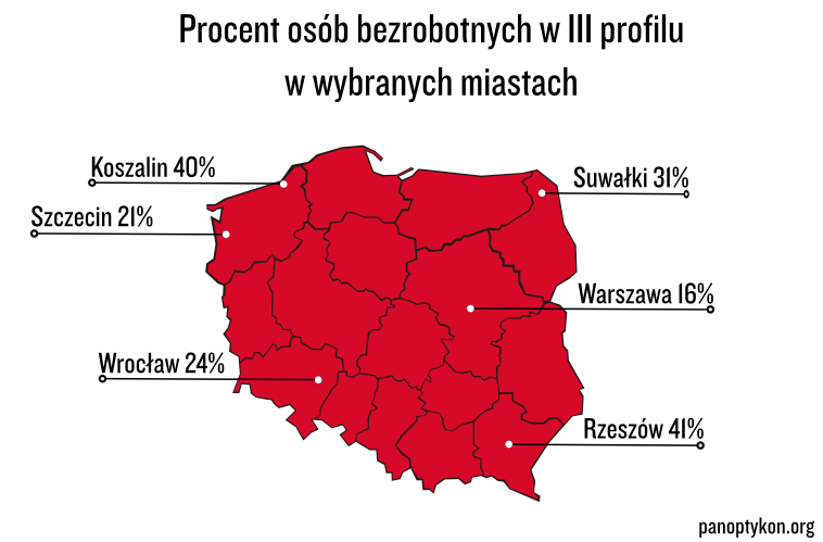Artykuł 11.02.2015 6 min. czytania Tekst Image Od maja zeszłego roku obowiązują przepisy dotyczące profilowania osób bezrobotnych. Fundacja Panoptykon już na etapie prac legislacyjnych krytycznie oceniała pomysł resortu pracy. Projektowi zarzucaliśmy niekonstytucyjność, brak przejrzystości oraz dyskryminacyjny charakter. Jednym z istotnych problemów, na które zwracaliśmy uwagę, była kwestia zmiany profilu pomocy. Zdecydowaliśmy więc przyjrzeć się, jak wygląda to w praktyce. Wnioski z tego badania prezentujemy poniżej. Odkąd pojawił się pomysł profilowania bezrobotnych, trwa w tej sprawie gorący spór. Z jednej strony Ministerstwo Pracy i Polityki Społecznej (MPiPS) zachwala ten instrument jako dobre narzędzie aktywizacji zawodowej. Z drugiej jednak, organizacje pozarządowe, eksperci od polityki społecznej oraz same urzędy pracy wskazują, że wprowadzona w Polsce wersja profilowania niekoniecznie realizuje założone cele. By lepiej poznać pracę administracji w tej kwestii, Fundacja Panoptykon wysłała wnioski o udostępnienie informacji publicznej do kilkudziesięciu powiatowych urzędów pracy (PUP) w całej Polsce. Odpowiedź uzyskaliśmy od 35 jednostek. W naszych wnioskach zadaliśmy kilka kluczowych pytań, m.in. o liczbę osób przydzielonych do konkretnych kategorii, skargi obywateli na profilowanie czy liczbę przypadków, w których dochodziło do zmiany profilu. Ta ostatnia kwestia jest jedną z bardziej problematycznych. Zmieniać czy nie zmieniać? Obowiązujące przepisy przewidują możliwość zrewidowania przydzielonego statusu tylko w sytuacji, gdy już po jego ustaleniu nastąpi zmiana sytuacji życiowej osoby bezrobotnej. Jest to bardzo sztywne uregulowanie, które zakłada niejako „nieomylność” samego procesu profilowania. A mogą pojawić się w nim błędy. Osoba bezrobotna może nie wiedzieć, jak udzielić odpowiedzi na pytania, a sam kwestionariusz może zupełnie nie odzwierciedlać jej skomplikowanej sytuacji życiowej. Tymczasem przydzielenie do danej kategorii może mieć daleko idące konsekwencje i warunkować uzyskanie dotacji czy stażu. Na podstawie naszego badania jesteśmy w stanie wykazać, że urzędy pracy bardzo różnie traktują przepisy o zmianie profilu. Zgodnie z danymi, najczęściej modyfikowano je w Warszawie – bo aż 803 razy. W Gdańsku odnotowano 635 takich przypadków, a w Szczecinie 555. Liczby te mogą zaskakiwać, gdy porównamy je w miastach o podobnej wielkości lub liczbie bezrobotnych. I tak – w Łodzi zmieniano profile 20 razy, natomiast w Katowicach odnotowano tylko jeden taki przypadek. Najbardziej jaskrawą różnicę widać w zestawieniu statystyk z Wrocławia i Bydgoszczy. W obydwu miastach jest ok. 11 tys. bezrobotnych, tymczasem w pierwszym z nich doszło do zmiany profilu w 288 przypadkach, w drugim – w zaledwie 9. Skąd wynikają te rozbieżności? Otóż urzędy mają różną praktykę w zakresie wprowadzania zmian. Gdyński urząd pracy przyznał, że modyfikacji dokonywano wielokrotnie. Podstawą do tego była często dobra znajomość osób bezrobotnych i przekonanie, że przypisany profil nie jest dostosowany do ich sytuacji życiowej. Z kolei w Kielcach bezrobotni zainteresowani zmianą profilu muszą składać pismo do dyrektora urzędu. Do tej pory wszystkie takie prośby były rozpatrywane pozytywnie. Wiele urzędów wykazuje się zapewne również empatią i podchodzi do sytuacji bezrobotnych z rozsądkiem, którego brakuje uregulowaniom prawnym. Niestety, działając w taki sposób, mogą naruszać obowiązujące przepisy. Lepszym rozwiązaniem byłaby więc zmiana regulacji, do których urzędy – jak widać – i tak same różnie się stosują. Kategorie w liczbach W naszym badaniu chcieliśmy również dowiedzieć się, jak wyglądają statystyki dotyczące profili przydzielanych osobom bezrobotnym. Jak się okazuje, znaczna większość (ok. 67%) osób jest przydzielana do II kategorii – która umożliwia korzystanie z różnych form wsparcia. Z kolei III profil uzyskuje ponad 25% osób. W grupie I znajduje się natomiast zaledwie 8% osób bezrobotnych. Nasze dane wskazują również, że liczebność danego profilu jest uzależniona od poziomu bezrobocia i zamożności konkretnego regionu. Stąd najwięcej osób przypisywanych jest do III kategorii m.in. w Wałbrzychu (49%), Rzeszowie (41%), Koszalinie (40%) czy Suwałkach (31%). Należy zastanowić się, czy przez stosowanie profilowania w obecnej formie nie odbiera się osobom mieszkającym w najuboższych regionach kraju faktycznego dostępu do efektywnych form wsparcia. Wolne wnioski Oprócz twardych danych, niektóre urzędy przekazały nam swoje opinie na temat procedury profilowania. Dowiedzieliśmy się na przykład, że w Radomiu osoby bezrobotne często wyrażają niezadowolenie z pytań zawartych w kwestionariuszu. Obywatele czują się przesłuchiwani, zdarza się też, że ich sytuacja życiowa „nie mieści” się w katalogu gotowych odpowiedzi. Wyniki profilowania bywają niesatysfakcjonujące, ponieważ utrudniają dostęp do różnych form wsparcia. W Toruniu osoba w takiej sytuacji, wezwała nawet policję z prośbą o interwencję. Z pewnością jest to okoliczność skrajna, dobitnie jednak pokazuje desperację wielu osób, które muszą mierzyć się z konsekwencjami kategoryzacji. Z kolei przemyski urząd pracy jednoznacznie wskazał, że profilowanie utrudnia wielu osobom uzyskanie realnej pomocy: „Na lokalnym rynku pracy 80% stanowią oferty pracy subsydiowane ze środków Funduszu Pracy. Osoby, którym ustalono I lub III profil pomocy mają ograniczony dostęp do tych ofert”. *** Dane, które uzyskaliśmy w naszym badaniu, są oczywiście cząstkowe i nie pokazują wszystkich problemów związanych z profilowaniem. Dokładnego i kompleksowego sprawdzenia, jak w praktyce stosowane są nowe przepisy, oczekujemy od MPiPS, które zapewne dysponuje dokładnymi statystykami. 