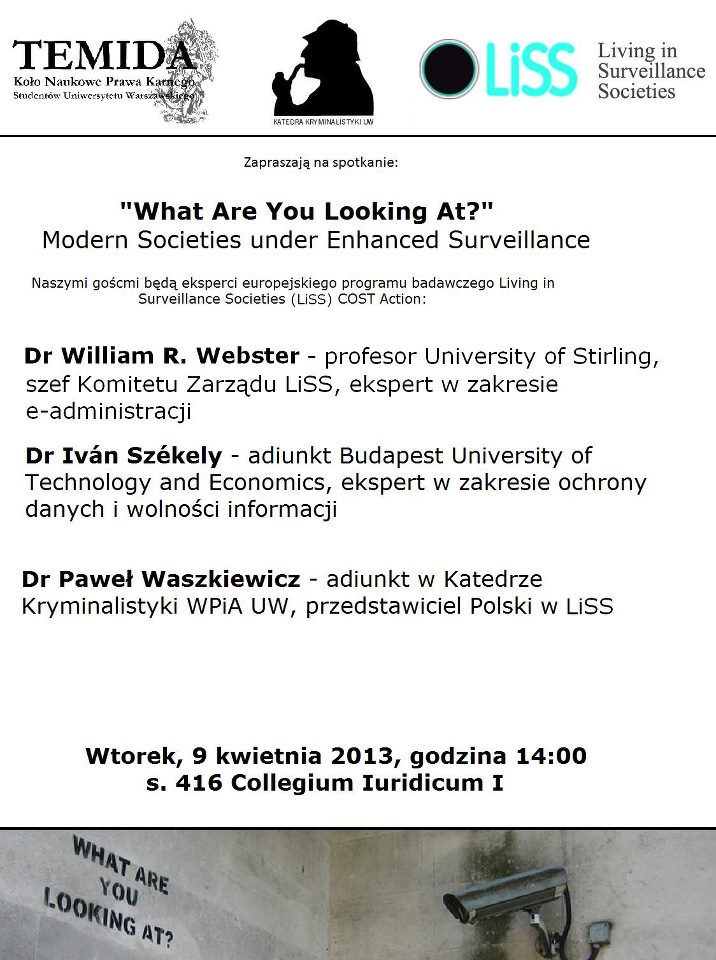Artykuł 08.04.2013 1 min. czytania Tekst What are you looking at? Modern Societies under Enhanced Surveillance - to tytuł seminarium, które organizuje Katedra Kryminalistyki Wydziału Prawa i Administracji UW, we współpracy z Kołem Naukowym Prawa Karnego "Temida" oraz projektem Komisji Europejskiej Living in Surveilance Societies. Odbędzie się ono we wtorek, 9 kwietnia 2013 r. o godz. 14.00 na Wydziale Prawa i Administracji Uniwersytetu Warszawskiego, Collegium Iuridicum I sala 416 (Krakowskie Przedmieście 26/28). Polecamy! Zaproszenie Fundacja Panoptykon Autor Temat dane osobowe Poprzedni Następny Newsletter Otrzymuj informacje o działalności Fundacji Twoje dane przetwarza Fundacja Panoptykon w celu promowania działalności statutowej, analizy skuteczności podejmowanych działań i ewentualnej personalizacji komunikacji. Możesz zrezygnować z subskrypcji listy i zażądać usunięcia swojego adresu e-mail. Więcej informacji o tym, jak przetwarzamy twoje dane i jakie jeszcze prawa ci przysługują, w Polityce prywatności. Zapisz się Zapisz się Akceptuję Regulamin usługi Leave this field blank Zobacz także Podcast Wywiad z Prezesem UODO. Rozmowa z mec. Mirosławem Wróblewskim Co zrobić, kiedy twoje dane osobowe są wykorzystywane niezgodnie z prawem? 15.02.2024 Dźwięk Artykuł Usługa za dane: wygrana w sądzie W ubiegłym tygodniu wygraliśmy sprawę przeciwko Urzędowi Ochrony Danych Osobowych przed Wojewódzkim Sądem Administracyjnym w Warszawie. Urząd ma ponownie przeanalizować ofertę „Bezpieczne wakacje”, w której PZU Pomoc oferował „bezpłatne” ubezpieczenie w zamian za zgodę na marketing. 12.07.2022 Tekst Artykuł Minister Zdrowia niszczy zaufanie do cyfryzacji W piątek Adam Niedzielski, obecny Minister Zdrowia, ujawnił informację, jaką receptę przepisał na siebie (w ramach recepty pro auctore) jeden z lekarzy. Lekarz ten dzień wcześniej alarmował o trudność z wystawianiem recept pacjentom. Czy w obliczu krytyki minister może ujawniać dane medyczne? 08.08.2023 Tekst